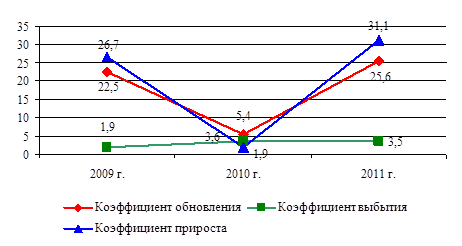 Графическая интерпретация движения активной части основных фондов ОАО «Гурьевский пищекомбинат» изображена на рис. 2.4.
