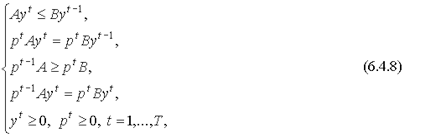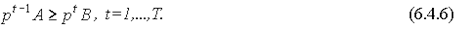 , вектор цен товаров. Неравенство (5) можно трактовать как непревышение спроса над предложением в момент t. Поэтому в стоимостном выражении (в ценах момента t) должно быть: