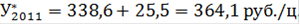 По данному прогнозу в 2011 году себестоимость 1 центнера зерна составит 364,1 руб.