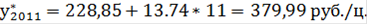 Согласно аналитической модели тренда себестоимость 1 ц. зерна исследуемого предприятия в 2011 году будут равна 379,99 руб.
