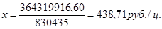 Рассчитаем среднюю себестоимость продукции (средняя арифметическая взвешенная):