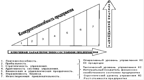 На рисунке 1.2 представлена взаимосвязь ключевых характеристик состояния предприятия с его конкурентоспособностью и качеством менеджмента.