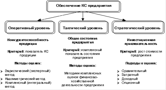 Задача обеспечения конкурентоспособности предприятия включает обеспечение конкурентоспособности продукции и собственно конкурентоспособности предприятия. Следует выделять разные критерии конкурентоспособности предприятия в зависимости от горизонта планирования и управления на предприятии. Основным показателем конкурентоспособности предприятия на оперативном уровне является интегральный показатель конкурентоспособности продукции.