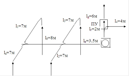 Исходные данные: Количество выделяющихся вредностей: mвр.= 1,2 кг/час пыли, Qяизб.= 26 кВт. Параметры помещения: 9´26´6 м. Температура воздуха: tп.= 21 °С, tу.= 24 °С. Допустимая концентрация пыли Сд.=50 мг/м2. Число работающих: 6 человек в смену. Схема размещения воздуховода приведена на рис.3.1. Подобрать необходимый вентилятор, тип и мощность электродвигателя и указать основные конструктивные решения.