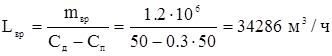 При наличии выделяющихся вредных веществ (пар, газ, пыль твр мг/ч) в помещении потребный расход определяют по формуле: