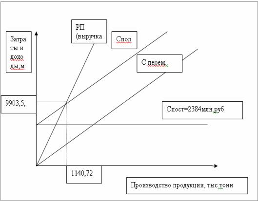 Цкрит = С/с-ть= 7549,399руб. Точка безубыточности (ТБ) является точкой критического объема. В этой точке у предприятия нет ни прибыли , ни убытков.