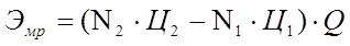 .Перерасход (экономия) от снижения материальных затрат в связи с изменением норм расхода материальных ресурсов под влиянием факторов повышения технического уровня производства определяется по формуле: