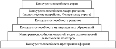 Рис. 1. Иерархия уровней конкурентоспособности в зависимости от объекта исследования