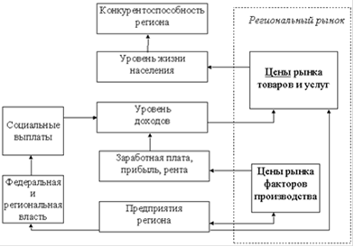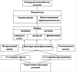 Рис. 2. Взаимосвязь конкурентоспособности региона, механизма ценообразования и регионального рынка