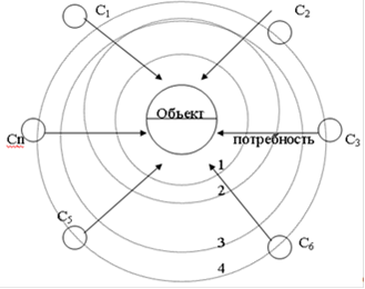 - Cn - российские регионы; О - основные зоны российской конкуренции: 1- тотальная; 2- сильная; 3- средняя; 4- слабая.
