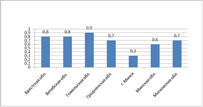Наибольший показатель уровня безработицы соответствует Гомельской области, а наименьший - городу Минску.