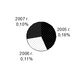 Рисунок 2.3 - Доля объема производства сои в МУП МТС «Луч» в общем объеме производства в Серышевском районе за период с 2005 по 2007 гг.