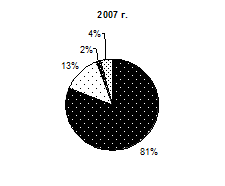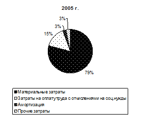 На рисунке 4.1 видно, что наибольшую долю в затратах составляют материальные затраты - 79 - 81 процент. Из них больший процент принадлежит затратам на ГСМ и посадочный материал. Сократились затраты на заработную плату и в общем объеме затрат составили 13 процентов в 2007 г. Затраты на амортизацию основных средств, прочие затраты незначительно изменились за рассматриваемый период. Их доли составляют 2 и 4 процента соответственно.