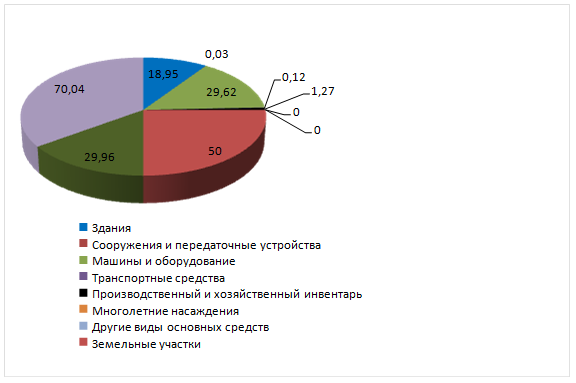 Рисунок 2 - Структура основных средств на конец 2009 года в процентах
