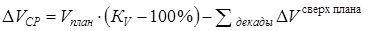 ∑∆Vсверх плана - сумма продукции, выпущенной сверх плана по декадам.