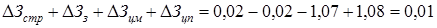 Сумма влияния факторов должна равняться общему изменению затрат на 1 руб. товарной продукции: