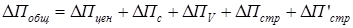Сумма факторов, влияющих на изменение прибыли, должна равняться общему изменению объема прибыли: