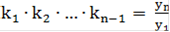 Эту формулу можно записать иначе, если использовать взаимосвязь между коэффициентами роста, вычисленными с переменной базой, и коэффициентами роста, рассчитанными с постоянной базой, т.е. учитывая, что ![]()