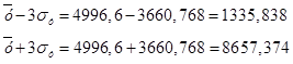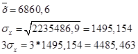 Поскольку минимальное значение у равное 4727,6 больше нижней границы интервала (2375,137), а максимальное значение равное 11060,5 меньше верхней его границы (11346,063), то можно считать, что в данной совокупности аномальных наблюдений (по х) нет.