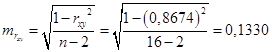 Оценку статистической надежности и значимости вычисленного коэффициента корреляции проведем с помощью коэффициента Стьюдента.