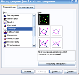 Рисунок 8. Диалоговое окно «Мастера диаграмм» тип диаграммы