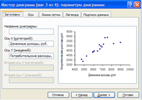 Рисунок 10. Диалоговое окно «Мастера Диаграмм» параметры диаграммы