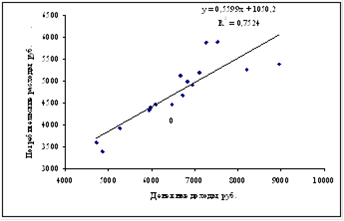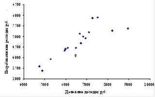Рисунок 12. Взаимосвязь между денежными доходами и потребительскими расходами