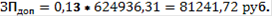 где Ндоп - норма дополнительной заработной платы, 13% [8].