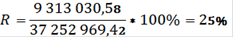 Так как в задании курсовой работы сказано, что необходимо увеличить стоимость продукции выше себестоимость на 25% рентабельности, то вычислим сначала её.