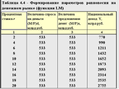где e - чувствительность спроса на деньги к изменению национального дохода (таблицы 4.0);- чувствительность спроса на деньги к изменению процентной ставки (таблица 4.0).