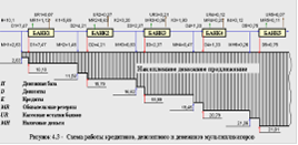Национальный (центральный) банк при формировании денежного предложения создает дополнительную денежную базу в размере H =10,1 млрд. руб. (информация необходима для расчета денежной мультипликации). Национальный (центральный) банк для системы коммерческих банков устанавливает норму обязательных резервов в размере R= 0,15 (информация необходима для расчета денежной мультипликации). Коммерческие банки формирую свои кассовые остатки на основе норматива b = 0,089 (информация необходима для расчета денежной мультипликации). Экономические субъекты предпочитают часть кредитов иметь в виде наличных на основе норматива g = 0,26 (информация необходима для расчета денежной мультипликации). Провести пошаговый расчет денежной мультипликации. Расчет провести не менее, чем для десяти банков (табл. 4.3). Показать действия мультипликатора на схеме (рис. 4.3).