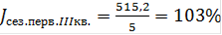 В целях устранения влияния случайных факторов на основе рассчитанных сезонных колебаний определяются индексы сезонности товарооборота по кварталам года: