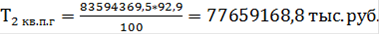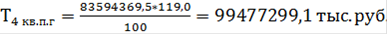 Объем товарооборота по кварталам на планируемый год определяется умножением среднеквартального товарооборота планируемого года на первоначальный индекс сезонности соответствующего квартала и делением на 100%: