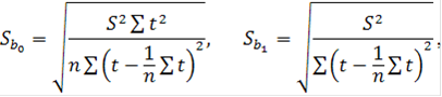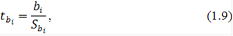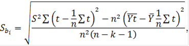 В первую очередь оценивается значимость коэффициентов построенной модели по выборочным данным, а также сама модель в целом. Для этого, в частности, используются t-критерий Стьюдента и F-критерий Фишера [5]: t-критерий Стьюдента: