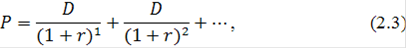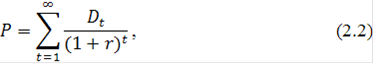 Допустим, что инвестор собирается купить акции некоторой компании и владеть ими всегда. В этом случае для инвестора естественно определить цену акции как текущее значение последовательности дивидендов, которые он надеется получить. Таким образом, цена акции с точки зрения инвестора должна быть равна
