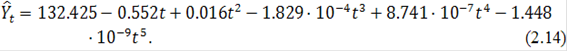 При подборе линий тренда к графику исходных данных было выявлено (рисунок 2.7), что лишь полиномиальный тренд пятой степени наиболее точно соответствуют тенденции исследуемого ряда.