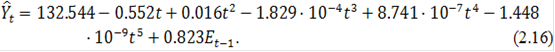 Анализ остатков модели (2.16) показал, что ряд остатков удовлетворяет всем пяти предпосылкам регрессионного анализа.