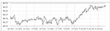 Рисунок 2.10 - График модели (2.16) и фактических значений акции IBM