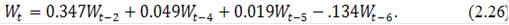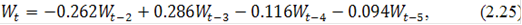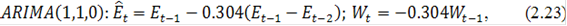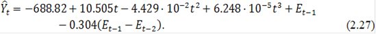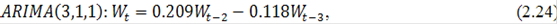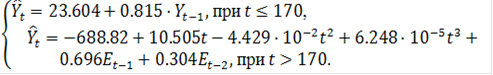 можно сделать вывод о том, что наилучшей для остатков является модель (2.23). Объединив модель (2.20) и (2.23) получим следующее уравнение: