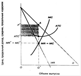Если монопольная фирма приняла решение производить что-либо, то она устанавливает цену так, чтобы объем спроса равнялся его оптимальному положительному объему выпуска. Т.к. MR=MC при оптимальном положительном объеме выпуска, а предельный доход ниже цены, то следовательно, данная цена будет выше MC. Таким образом, если фирма решает все таки что-нибудь производить, то она максимизирует прибыль, поднимая цену выше уровня предельных издержек.