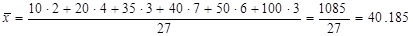 Взвешенная средняя для дискретного ряда используется тогда, когда индивидуальное значение признака представлено конкретным числом, считается по сгруппированным данным и имеет общий вид: