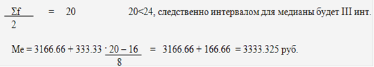 .325 руб.делит совокупность из 40 предприятий на 2 половины у I значение признака < 3333.325 руб., а у II больше.