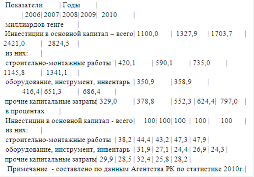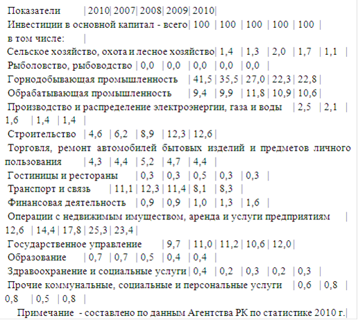 Основные направления совершенствования инвестиционной политики Республики Казахстан