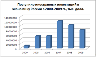 Динамика иностранных инвестиций в экономике России в 2000-2009 гг.